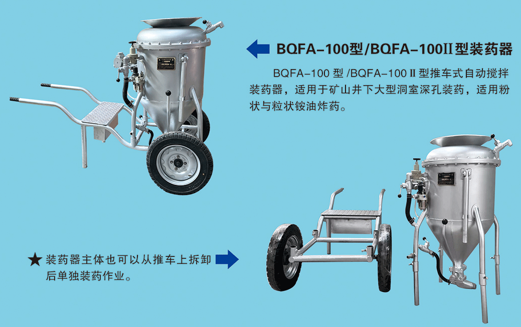 BQFA型自動攪拌系列裝藥器,我公司最新研發(fā)并已生產(chǎn)全面推廣市場,已獲得國家發(fā)明專利。手動攪拌裝藥器歷經(jīng)30余年,現(xiàn)打破傳統(tǒng)產(chǎn)品觀念,讓習(xí)慣改變,迎合市場需求,打造更安全便捷的礦用機(jī)械設(shè)備。突破創(chuàng)新,奮力實(shí)現(xiàn)自動化礦山,致力滿足各大礦山需求,在繁榮昌盛的道路上繼續(xù)前行。