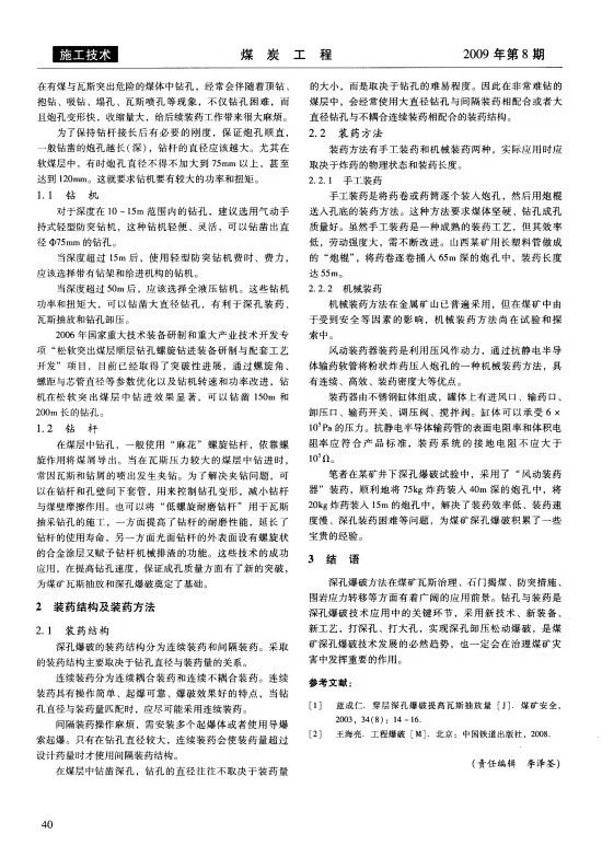 煤礦深孔爆破鉆孔裝藥技術應用