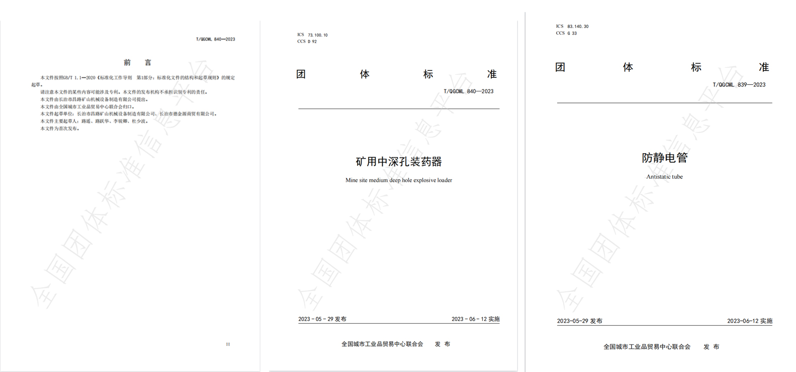 制定標(biāo)準(zhǔn)實(shí)施-《礦用中深孔裝藥器》與《防靜電管》